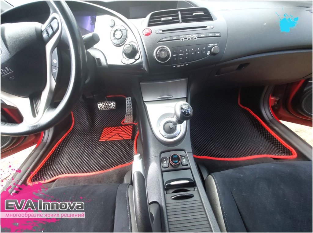 Honda Civic VIII FN (хетчбек) 2005 - 2011 идеально подходит для городской жизни: в меру компактный, вместительный, приятный и с хорошей эргономикой салона. Вероятно, вы проживаете в Калуге и, как успешный человек, ежедневно отправляетесь из дома на работу, затем занимаетесь шоппингом, проводите время с друзьями и возвращаетесь домой. По пути к вам постоянно присоединяются пассажиры. Каково вам, когда некоторые из них, садясь, не обращают внимания на чистоту, топчут обувь и разбрасывают мусор?)) Мы понимаем, что это может вызывать явные неудобства, даже моральные страдания!! Но у нас уже есть готовое решение! Установите коврики Eva Innova с бортиками, которые защитят практически всю площадь пола в салоне вашего автомобиля. Они надежно фиксируются, не скользят, плотно прилегают к полу и благодаря своей уникальной ячеистой структуре предотвращают распространение грязи, что значительно упрощает процесс уборки. Просто выньте коврик из машины и отряхните его - и все чисто! :-)