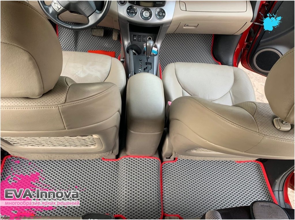 Toyota RAV 4 III (XA30) 2006 - 2012 идеально подходит для городской жизни: в меру компактный, вместительный, приятный и с хорошей эргономикой салона. Вероятно, вы проживаете в Калуге и, как успешный человек, ежедневно отправляетесь из дома на работу, затем занимаетесь шоппингом, проводите время с друзьями и возвращаетесь домой. По пути к вам постоянно присоединяются пассажиры. Каково вам, когда некоторые из них, садясь, не обращают внимания на чистоту, топчут обувь и разбрасывают мусор?)) Мы понимаем, что это может вызывать явные неудобства, даже моральные страдания!! Но у нас уже есть готовое решение! Установите коврики Eva Innova с бортиками, которые защитят практически всю площадь пола в салоне вашего автомобиля. Они надежно фиксируются, не скользят, плотно прилегают к полу и благодаря своей уникальной ячеистой структуре предотвращают распространение грязи, что значительно упрощает процесс уборки. Просто выньте коврик из машины и отряхните его - и все чисто! :-)